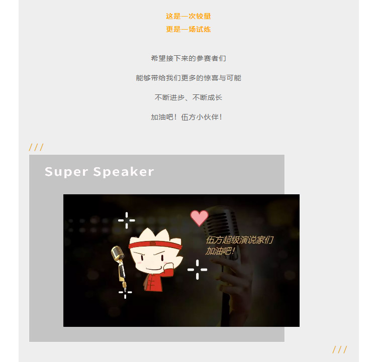 下一篇:伍方資訊丨“伍方超級(jí)演說家”第一季第二月月冠軍誕生!